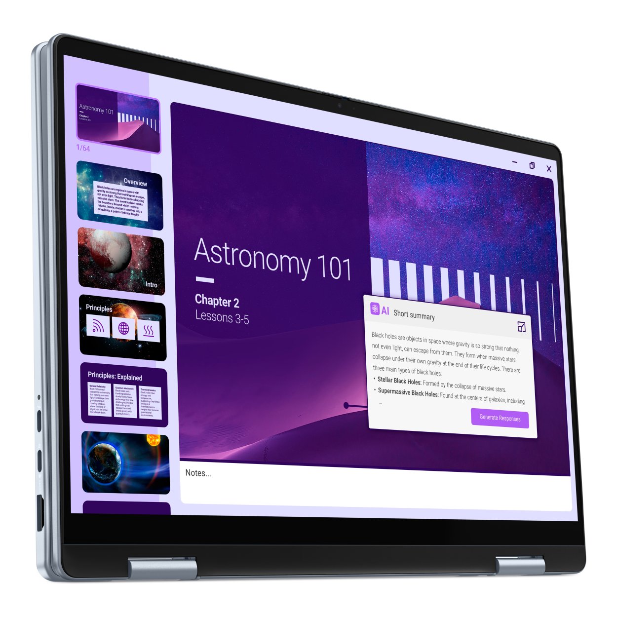 Sleek 14-inch 2-in-1 with on-device Copilot+ powered by Intel® Core™ Ultra processors, with stunning performance that powers the newest AI experiences and incredible battery life for seamless on-the-go multitasking with versatile working modes.