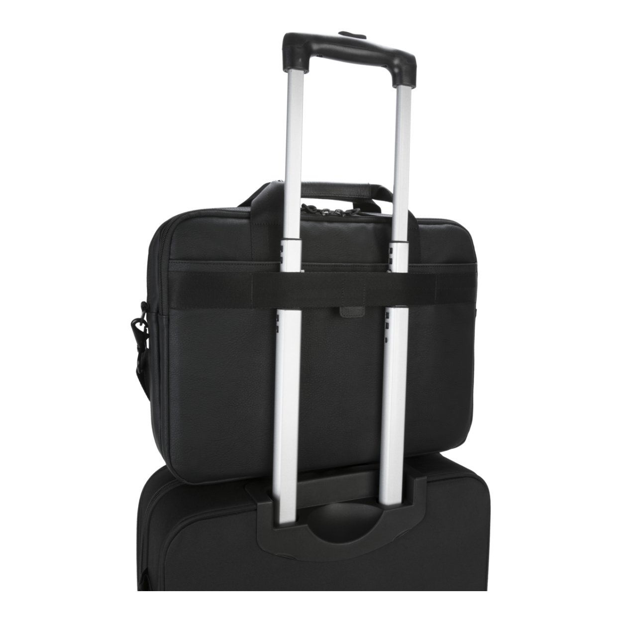 Carry the briefcase hands-free with its detachable and adjustable non-slip padded shoulder strap. Or, you can grab the lightweight briefcase by its padded handles and quickly be on your way. While traveling, slip your briefcase onto your rolling luggage using the trolley pass-through.