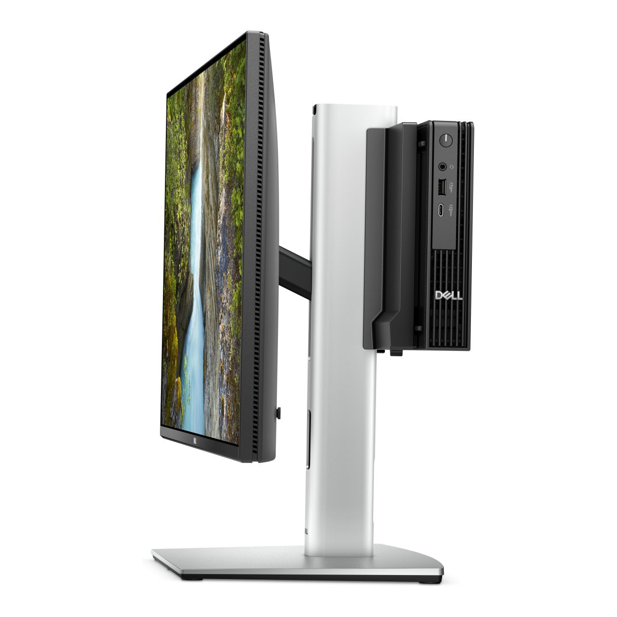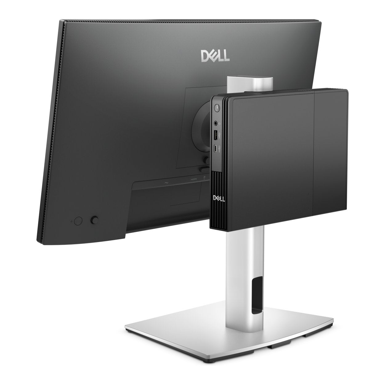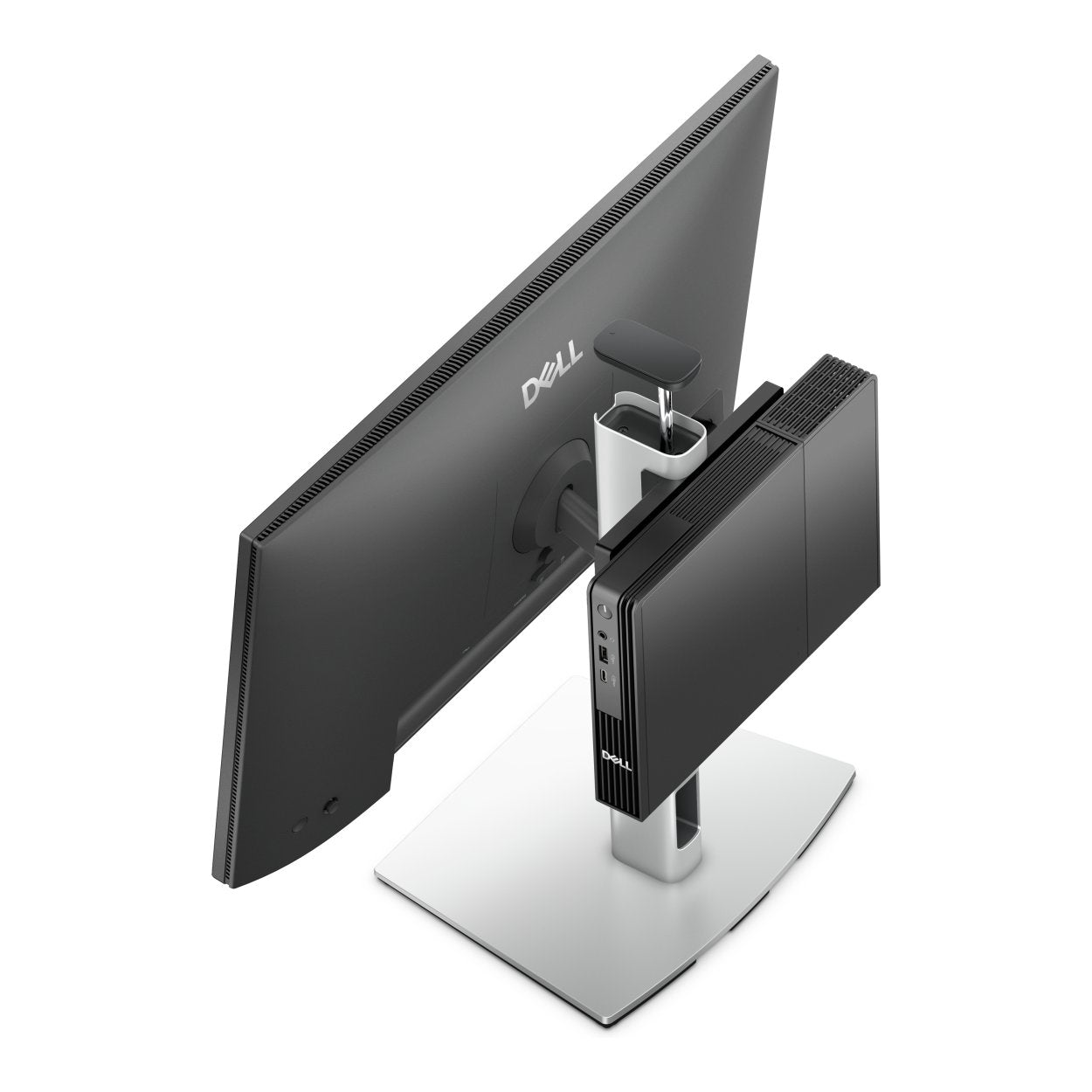 Tilt, pivot and raise the monitor to your ideal height, up to 150 mm. Securely house your Dell Pro Micro Desktop and monitor with options for padlocks and Kensington locks.